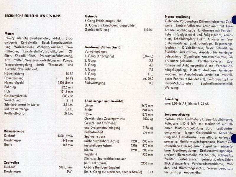 Daten aus Prospekt (1962) |